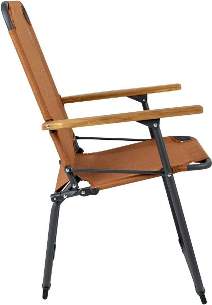 De stoel is uitgevoerd met een zwart aluminium frame en is voorzien van luxe Cationic bekleding. De houten armleuningen, het zwarte frame en de luxe bekleding zorgen voor een stoer design. De stoel kan een maximaal gewicht van 100 kg aan en weegt slechts 2,3 kg.